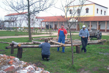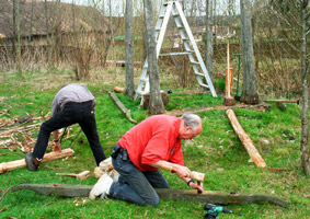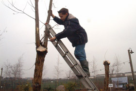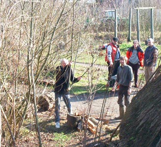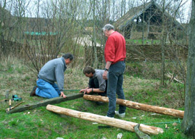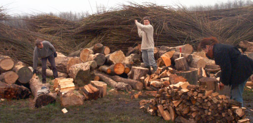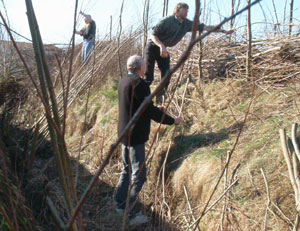 1-03-2003, met het gesnoeide hout hogen we de wal op. |